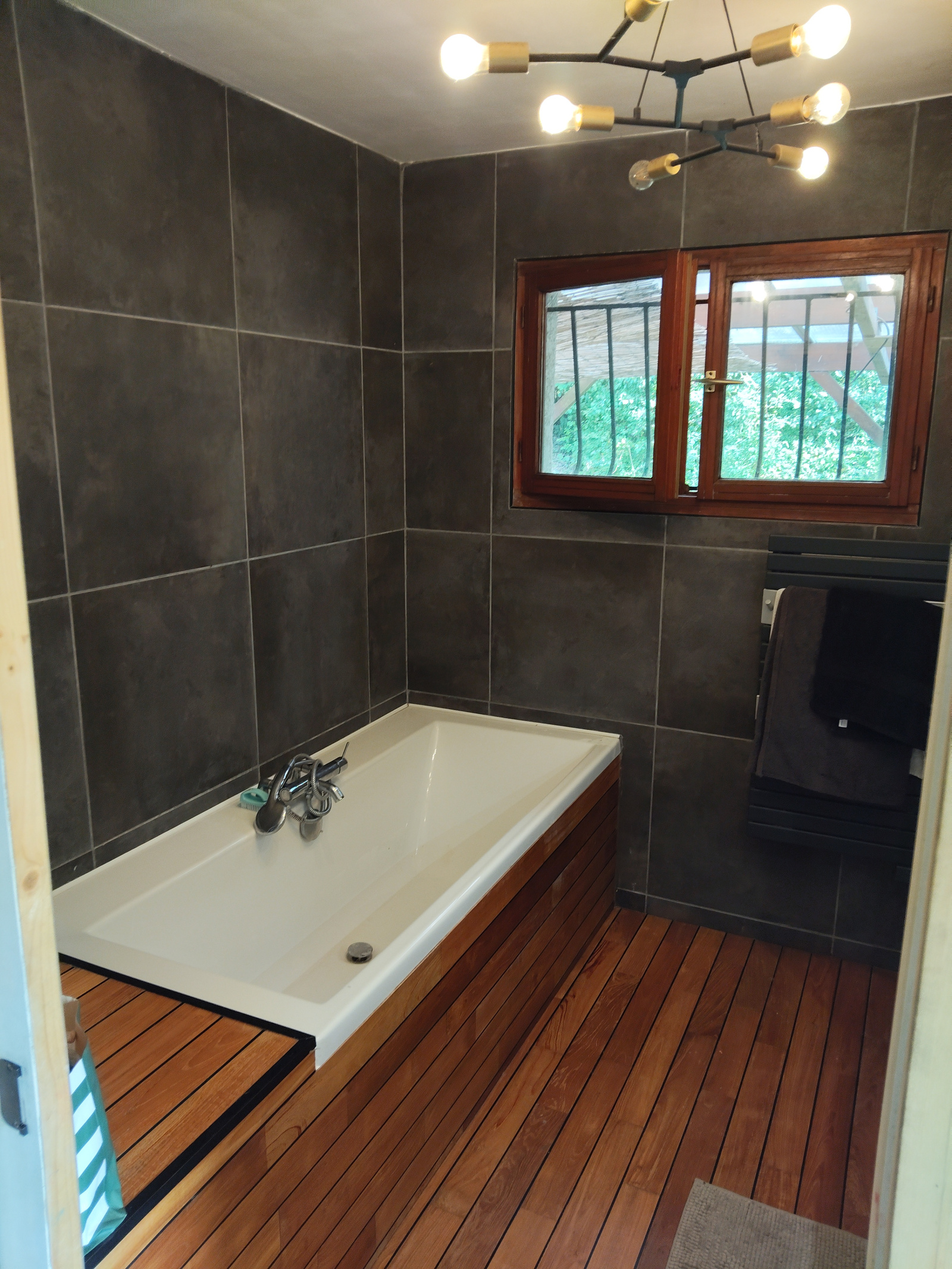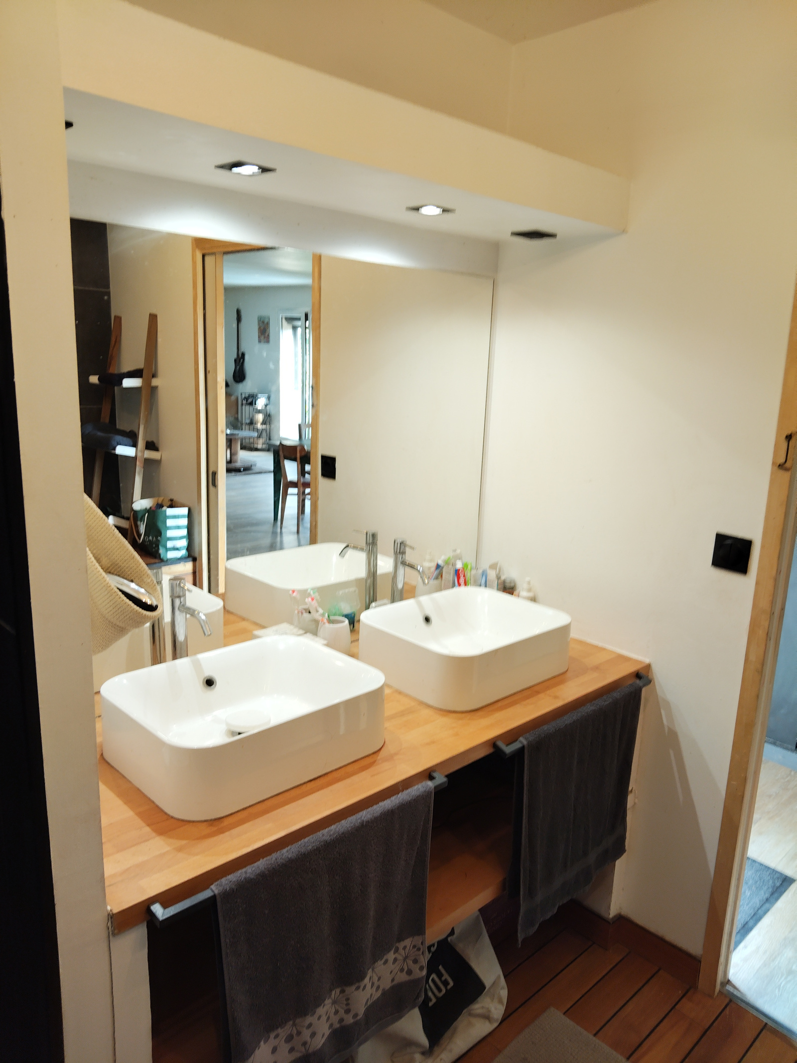 Une salle de bain entièrement refaite de 9 m2 avec douche à l'italienne, baignoire et double vasque